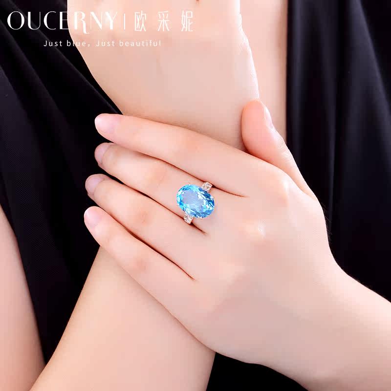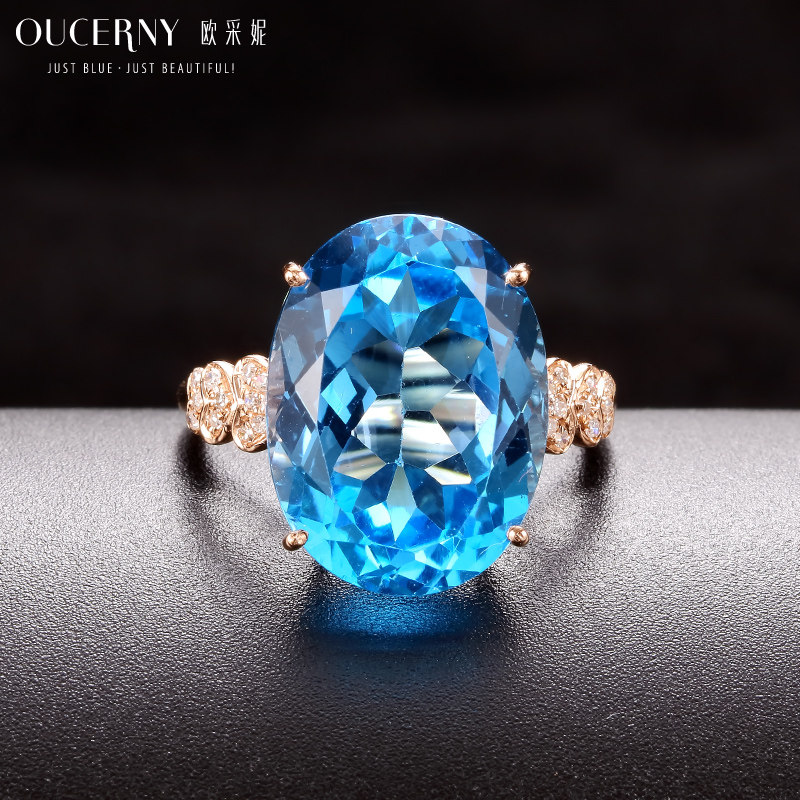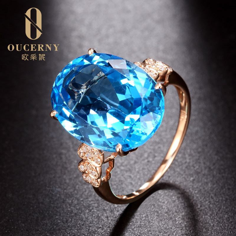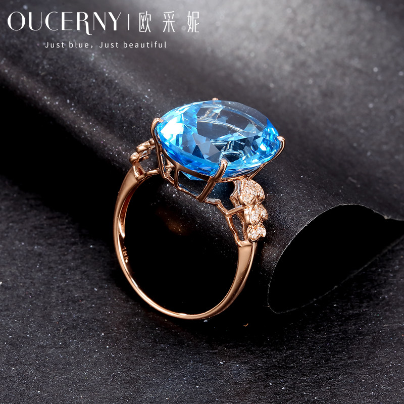 Opchini jewelry Large Kratopa ring 18k rose gold inlaid blue gemstone hand jewelry custom models