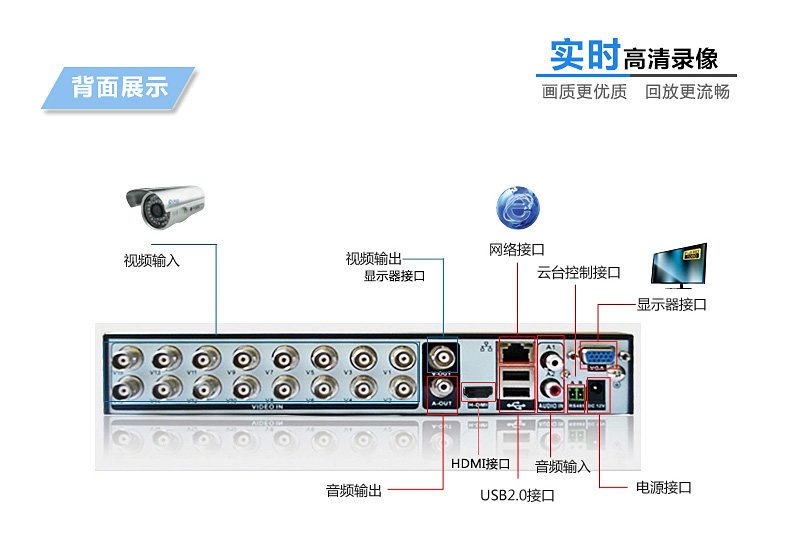Jufeng 16-channel analog hard disk recorder DVR5816T-S mobile phone intelligent cloud monitoring audio and video synchronization