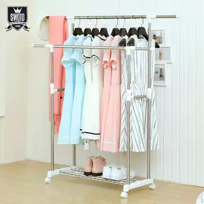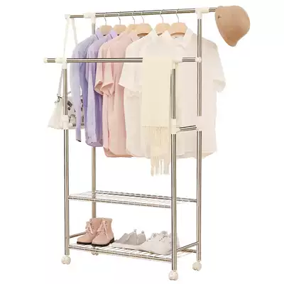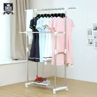 Double pole drying rack floor-to-ceiling stainless steel folding indoor simple hanger household balcony mobile cool hanger drying rack