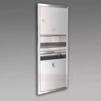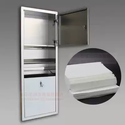 High quality 304 stainless steel in-wall toilet paper box with trash can powder room inlaid sanitary tissue rack