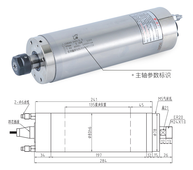 Stone metal processing 2 2kw 80mm constant torque spindle motor engraving machine dedicated Hanqi front spindle