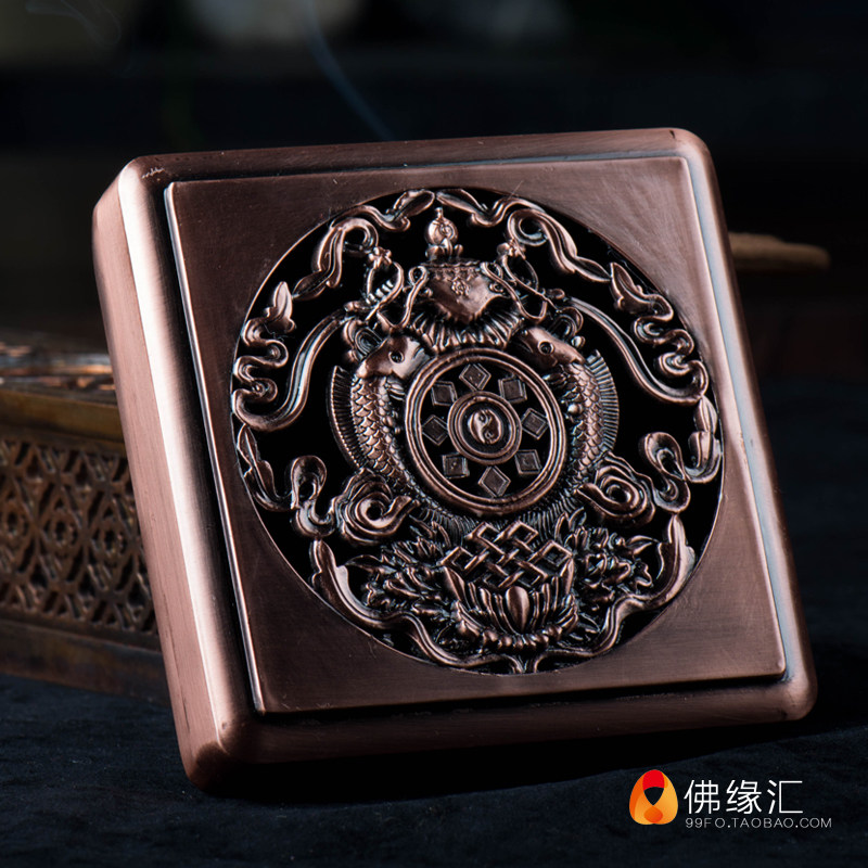Foyuanhui alloy Auspicious Eight Treasure pan incense burner eight auspicious incense burner portable practical incense burner small