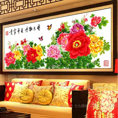 Printed cross stitch 2021 new living room large simple modern flower blooming rich peony flower national color peony thread embroidery