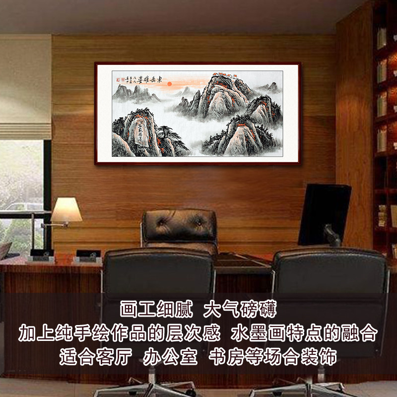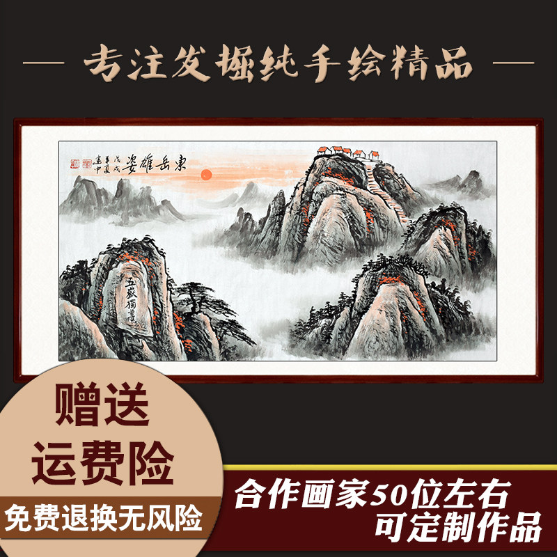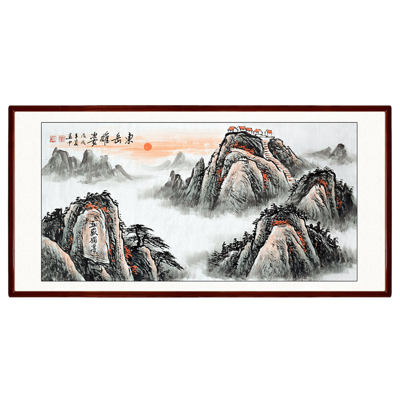Pure hand painted Taishan Tuguo State painting landscape painting Sunrise Living room office Small size with mountain waterless hanging painting True trail