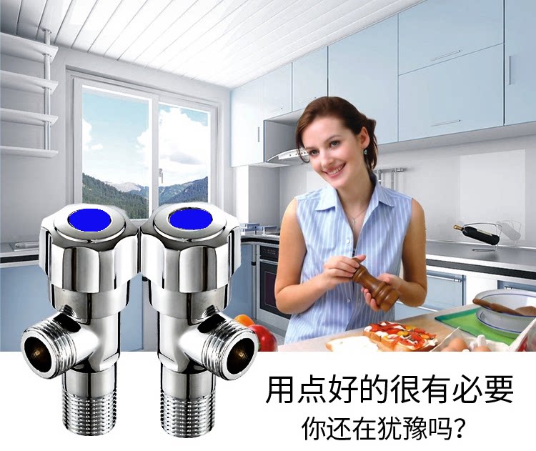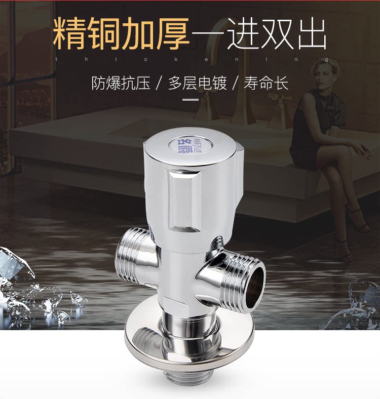 Qile full copper triangle valve faucet hot and cold bathroom toilet water stop valve explosion-proof thickened three-way angle valve switch