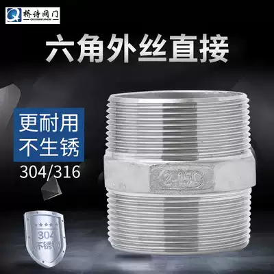 304 stainless steel outer wire directly 316 hexagonal wire double male screw internal double external wire straight Joint 4 min 1 2DN15