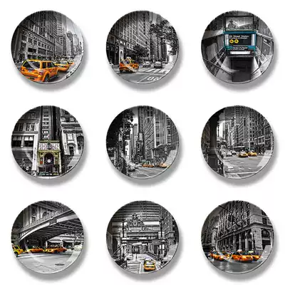 European and American city impression hanging plate New York disc decorative painting plate photo plate Wall custom yellow creative landscape