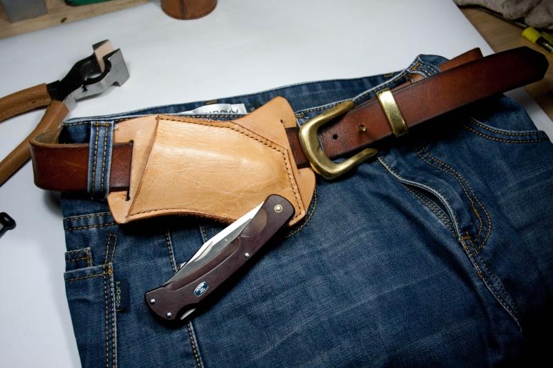 Afei handmade scabbard custom scabbard cowhide vegetable tanned leather folding knife sleeve waist hanging horizontal outdoor sports personality