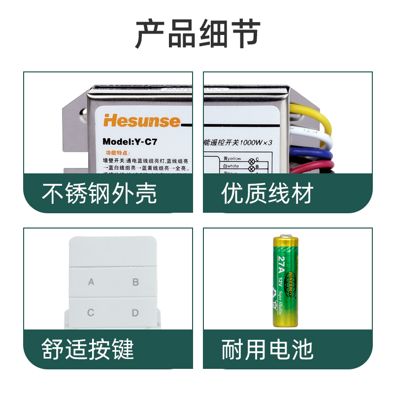 Riverson 3-Way Remote Control Switch 220V 23-Way Lamp Wireless Remote Control Switch Module Remote Control Segmental Switch