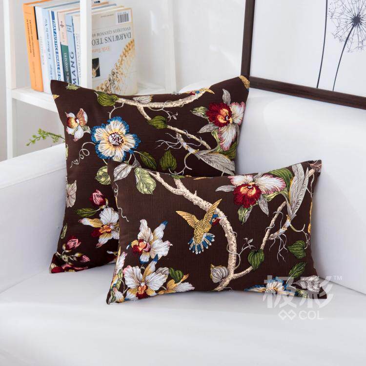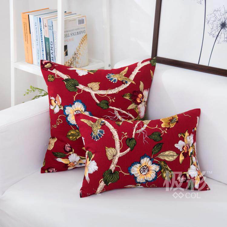 China Wind Flowers Birds Classical Fields Garden Pure Cotton Canvas Cushion Cover With Core Holding Pillow Waist Leaning Pillow Big Number Sofa Backrest Cushion