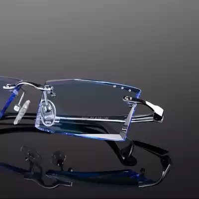 Pure titanium inlaid Diamond rimless edge myopia glasses with glasses finished Men's glasses frame Korean tide myopia mirror
