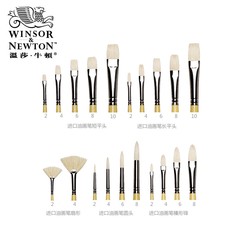 Windsor Newton Original British Imported Oil Painting Brush Long Pole Bristle Propylene Oil Paint Fine Art Special Flat Head Round Toe Fan Brush Single Set