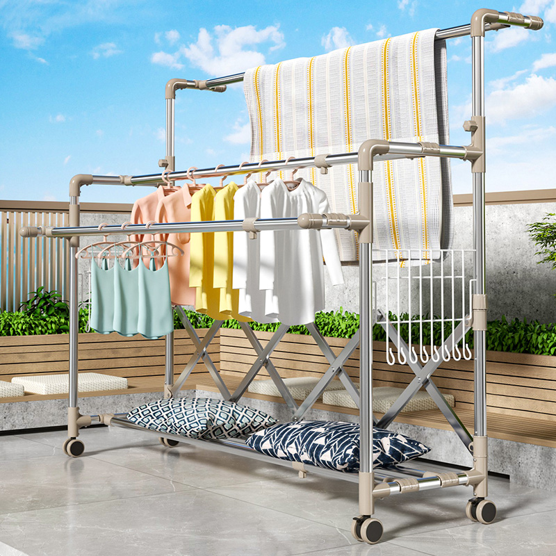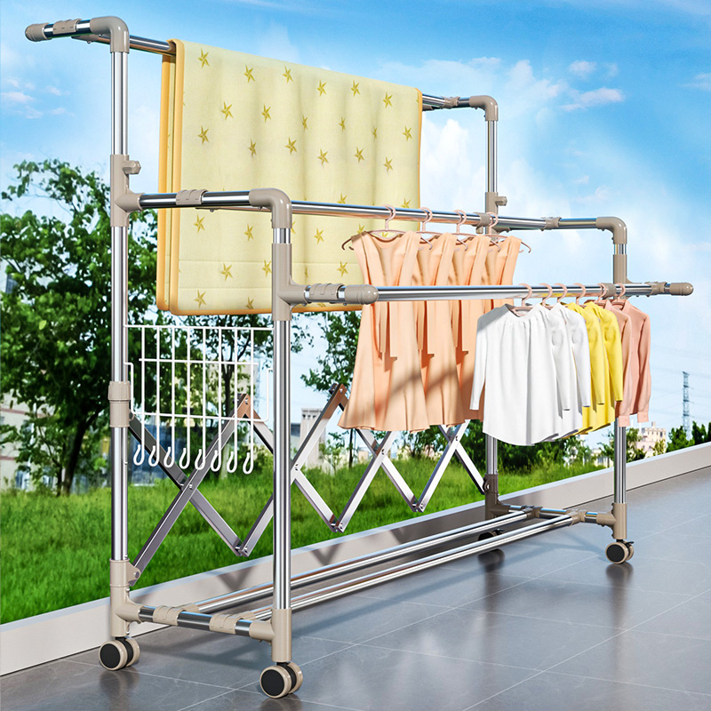 Stainless steel clothes drying rack folding floor retractable indoor balcony drying rack outdoor clothes drying rod large quilt rack
