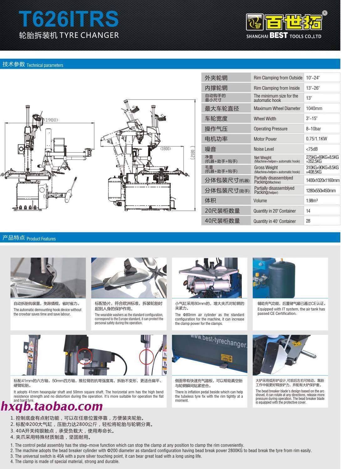 Shanghai Baishito Flip Bird Head Explosion Auxiliary Arm Tire Remover Machine T626ITRS Tire Remover Machine