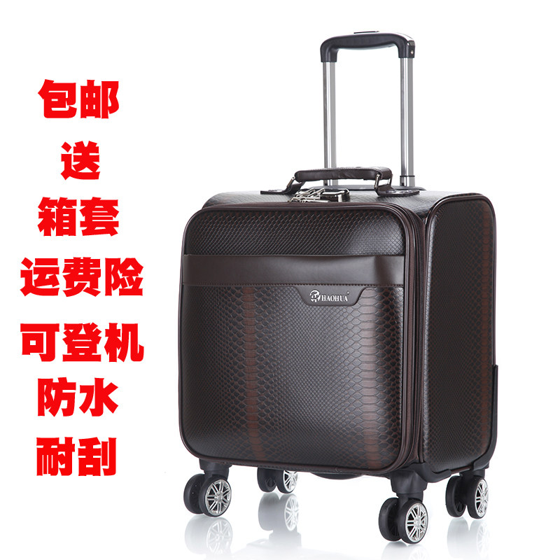 Avocado Leather Striped Pull-Lever Case PU Small Business Suitcase 18 Inch Case Universal Wheels Men And Women Suitcases