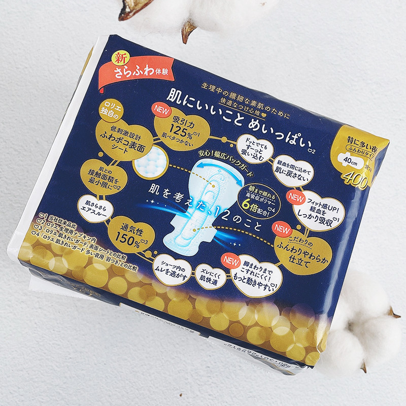Japan imported Kao Leerya soft cotton plain muscle sanitary napkin female aunt towel brand 40cm7 pieces