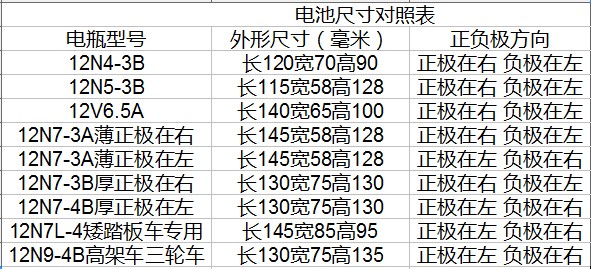 Qian 12N5-3B curved beam car Yamaha Qianjiang 12V6 5A Qianjiang 12N7-3A thin positive pole on the right Qianjiang 12N7-3B thick positive pole on the right Qianjiang 12N7-