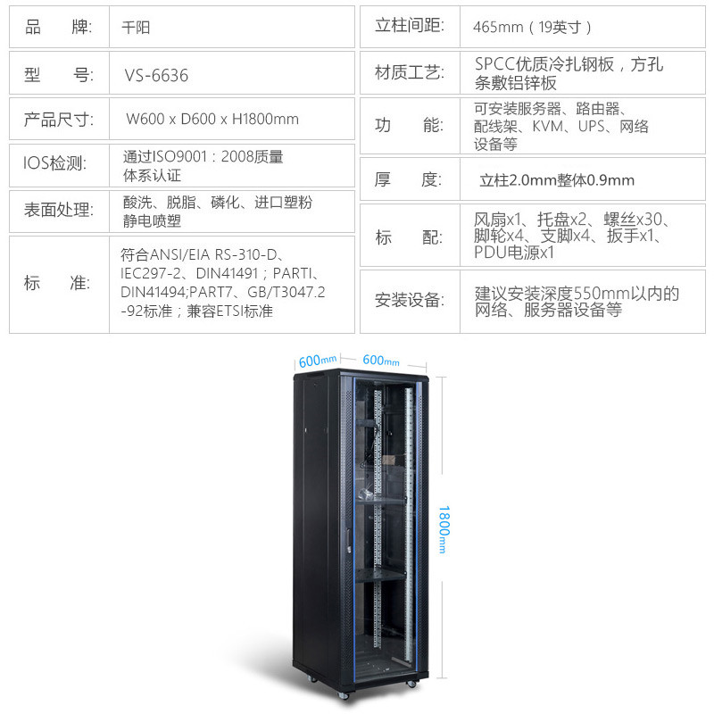 Network Cabinet 1 8m 36U Switch Cabinet Server Monitoring Amplifier Computer Cabinet VS6636