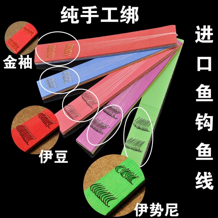 1 Board Handcrafted Fine Tie Bench Fishing Line Group Subline Double Hooks Tied Golden Cuff Ybean Iseny Fish Hook with Spurs