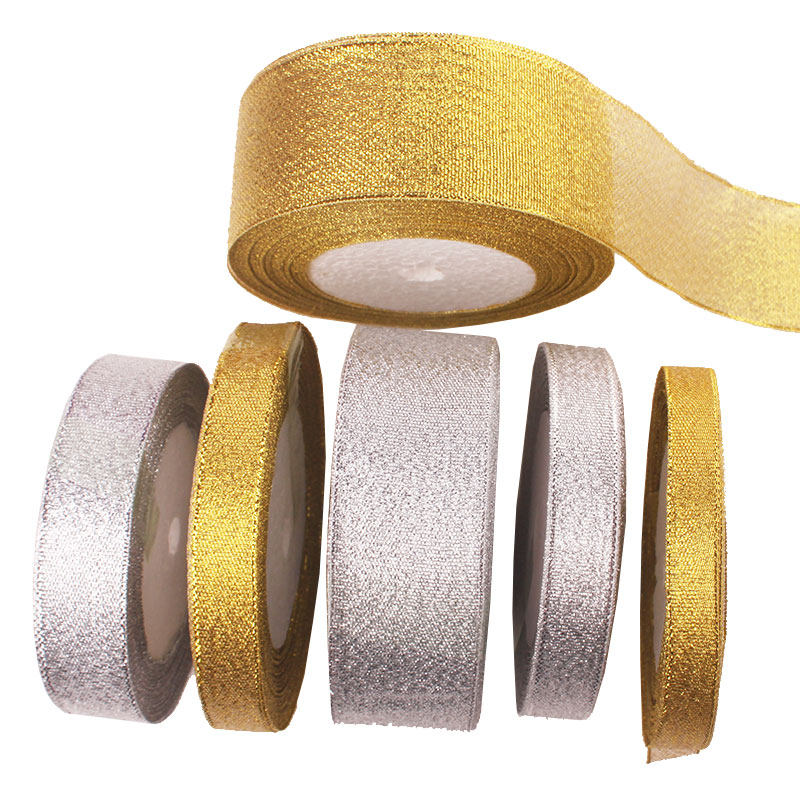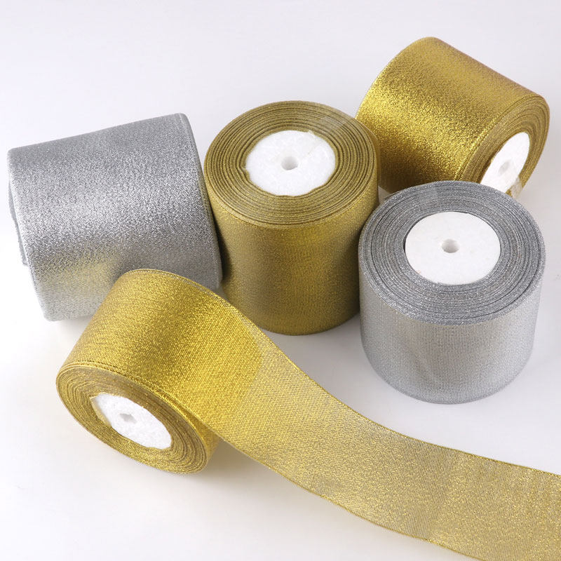 Gift ribbon Bow gift box Silver gold ribbon cloth Glitter belt Christmas ribbon Color packaging ribbon Wide cable tie