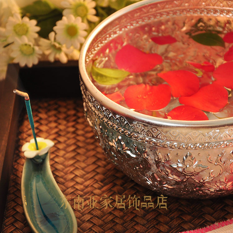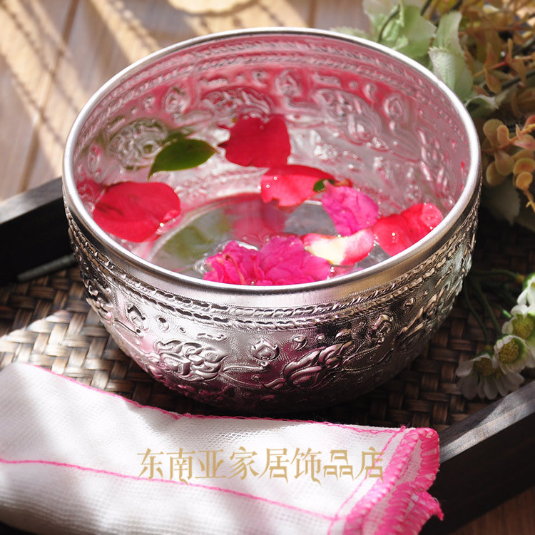 Thai imports tin ware tin bowls tin cans Thai style hotel clubhouse beauty hydrotherapy supplies Flowers Bowls Spa Utensils