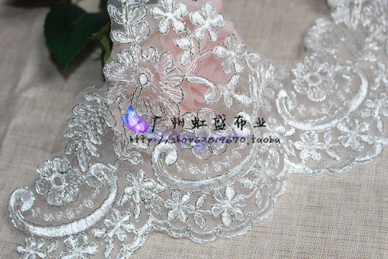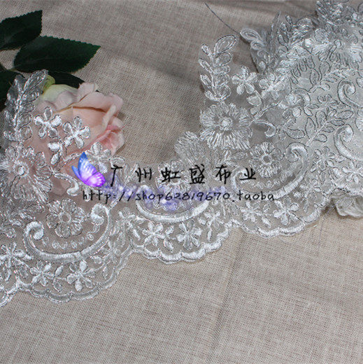 Eurostyle high-end gold and silver wire car bone Eugen yarn embroidery lace lace bridal wedding dress accessories silver florian lace