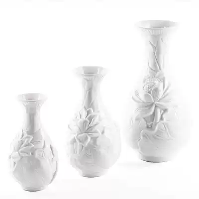 White porcelain relief Lotus vase Guanyin net bottle White flower bottle for Buddha Ceramic bottle for Buddha Large Medium Small