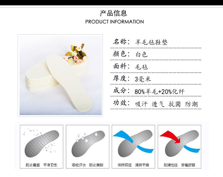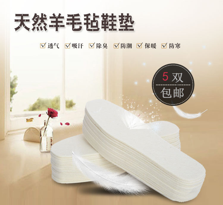 Four seasons pure wool felt insole sweat absorption warm deodorant spring and summer thickened men's and women's shoes sports