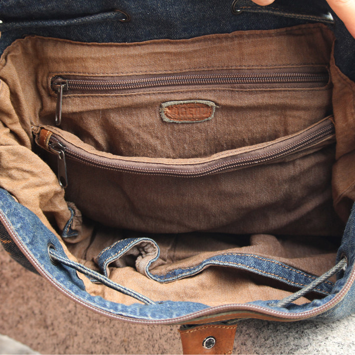 Korean Version Draw With Bucket Bag Woman Bag Denim Bag Skew Satchel Shoulder Handbag Retro Rivet Casual Hit Color Fashion Bag