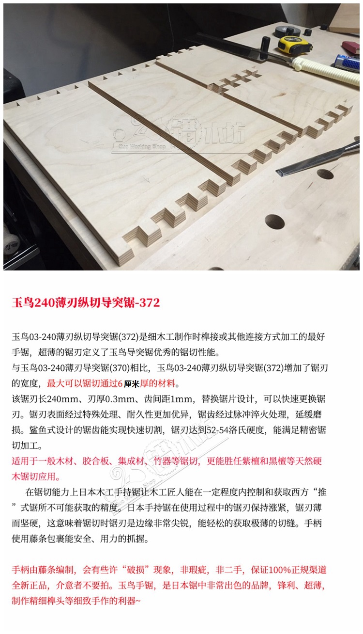 Jade bird Japan imported ultra-thin clip back slitting guide saw 372 joinery tenon dovetail tenon saw replacement saw blade