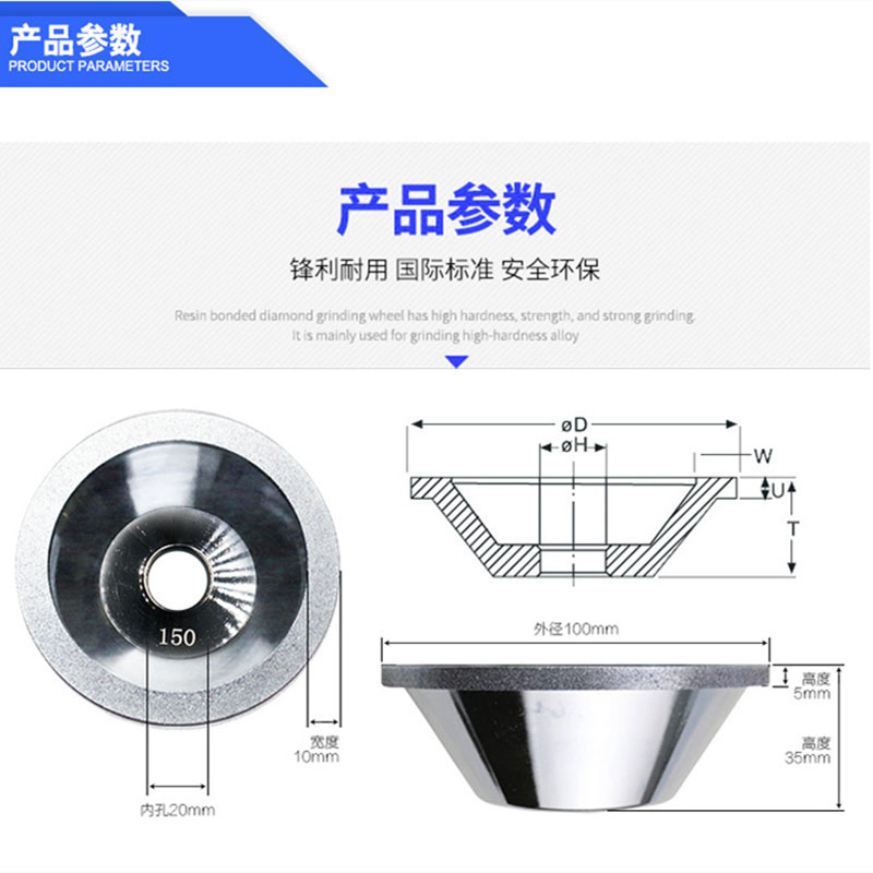 Diamond alloy bowl type diamond grinding wheel grinding tungsten steel resin CBN ceramic milling cutter angle mill grinding knife machine 100D