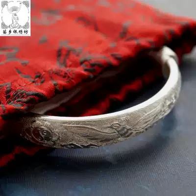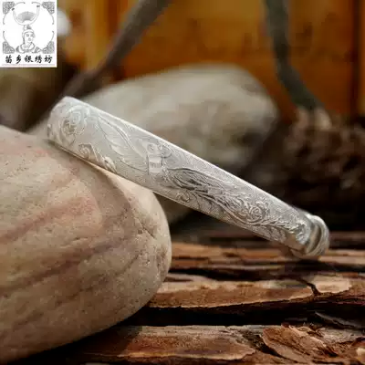 Miaoxiang silver embroidery Workshop handmade 999 Shuangfeng Chengxiang boutique push-pull foot silver bracelet female processing custom-made