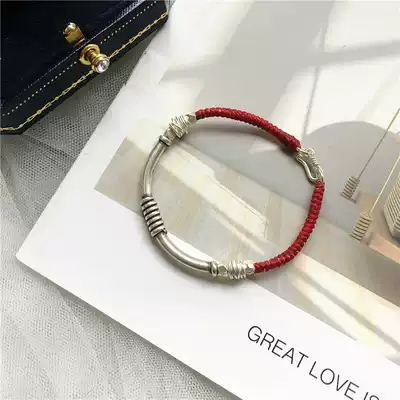 Hand ins niche design silver hand female sterling silver silver wax thread weaving transshipment red red rope girlfriends two