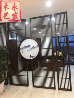 Custom screen with yarn painting partition decoration new Chinese solid wood lattice partition Modern simple cutout grille