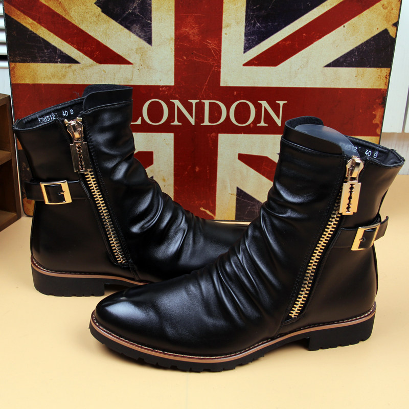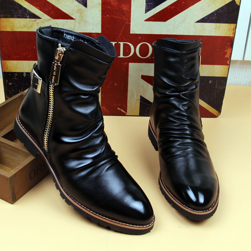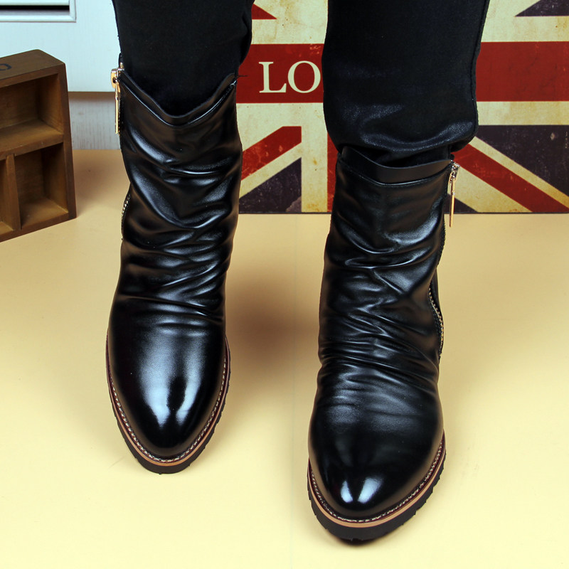 Pointed toe new British high-barrel boots Korean style fashion trend men's leather boots Martin boots warm boots