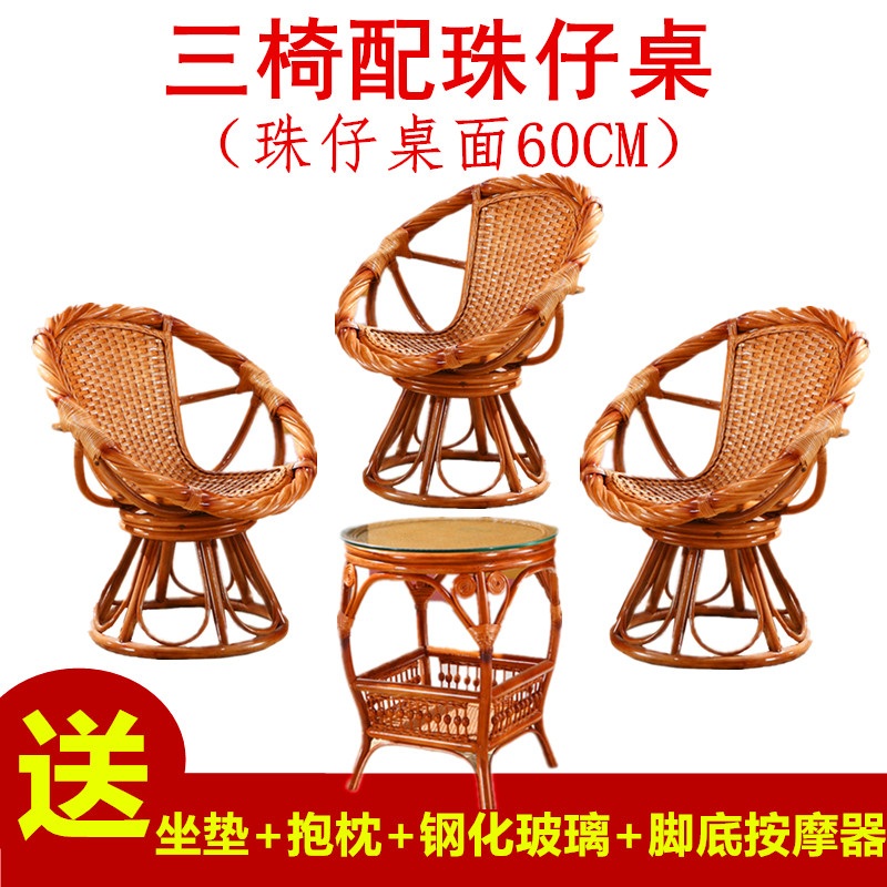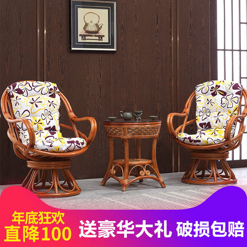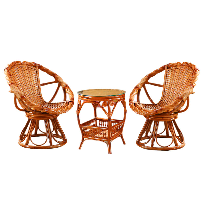 Mingyuan rattan chair coffee table three-piece set twist rattan swivel chair natural real rattan leisure chair combination balcony table and chair elderly chair