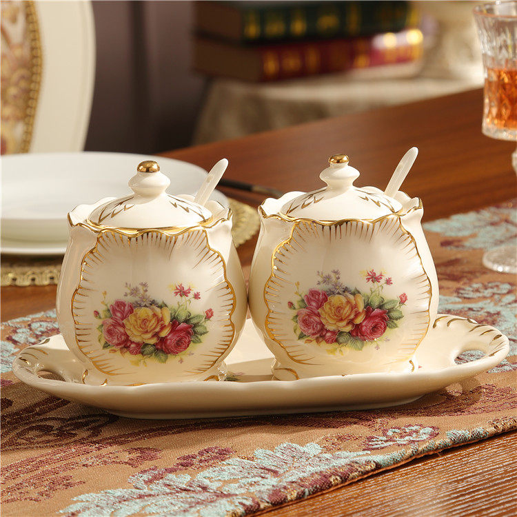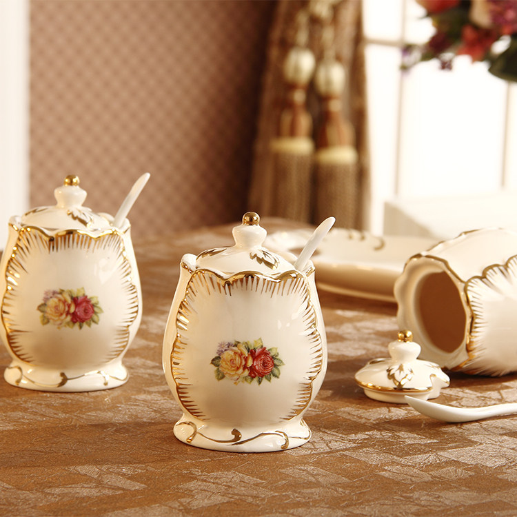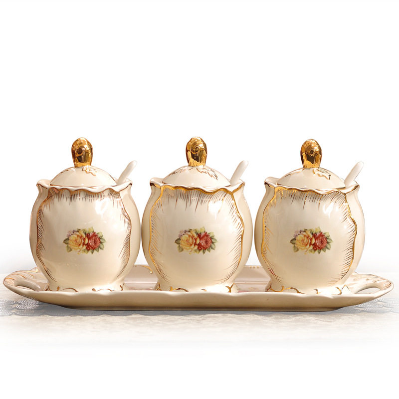 Ostyle sketching ceramic seasoning jars bottle Three sets of seasoning boxes Salt MSG Jar Creative Kitchen Items Suit