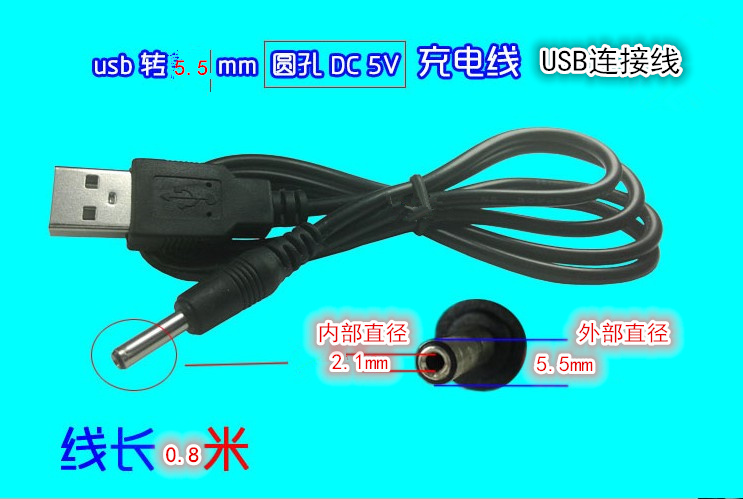 Projector fan router radiator charging power cord round hole USB to DC diameter 5 mm wire