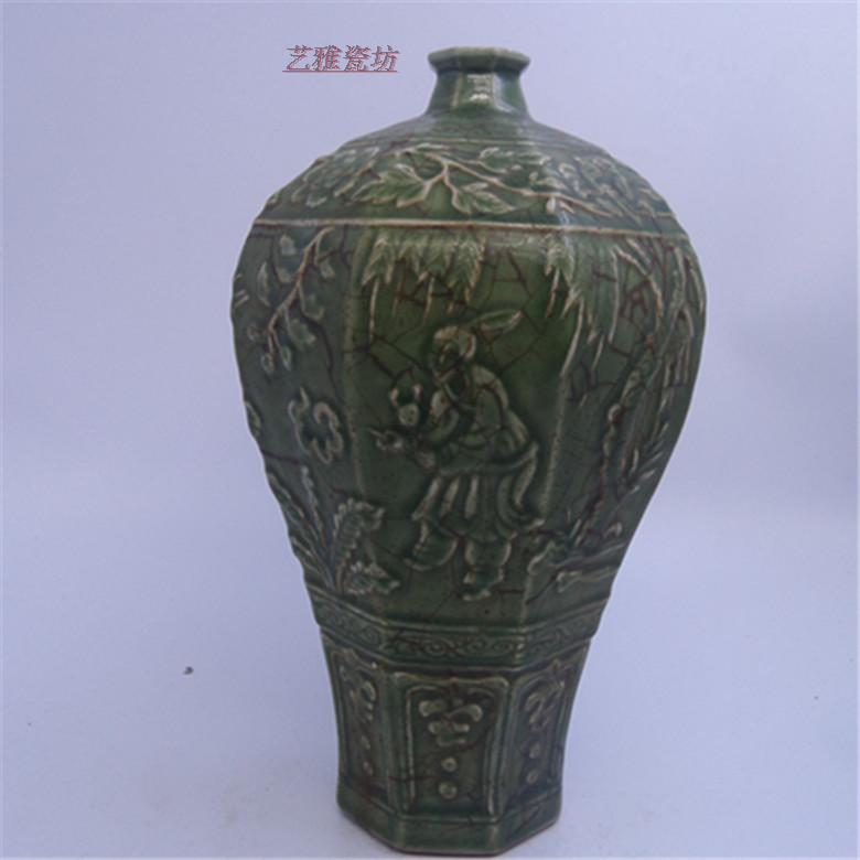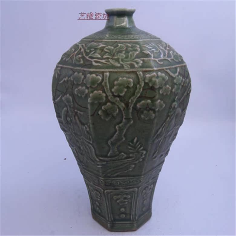 Special Price Qing Imitation Dragon Spring Glaze Figure Octagonal Plum Bottle Antique Ancient Play Imitation Ancient Porcelain Retro Swing Piece Collection