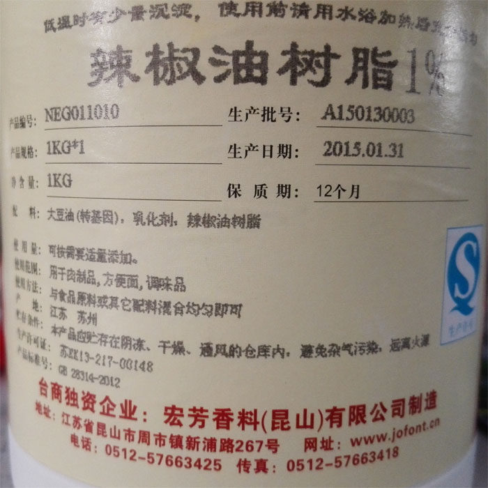 Jiangsu Kunshan Hongfang water soluble chilli essential oil soluble resin 1000g Devil spicy halogen duck neck food additive