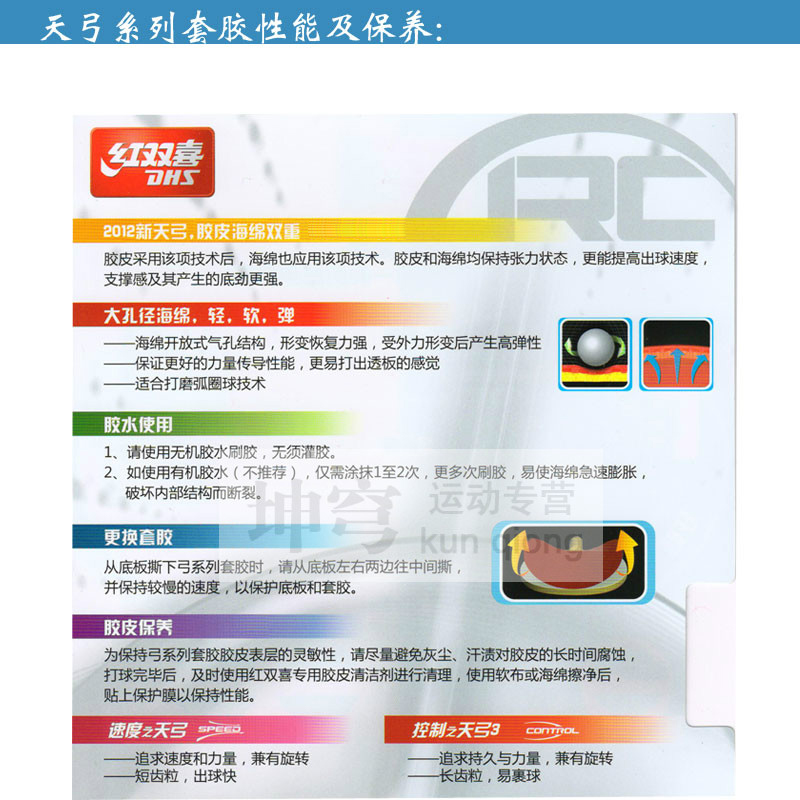 Red double happiness table tennis rubber day bow Day bow 3 day bow 5 Cake sponge control type astringent anti-glue set glue