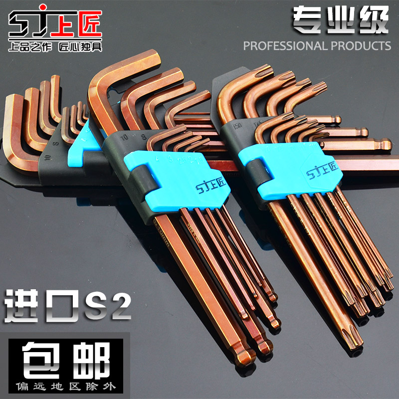 Shang Carpenter imported S2 hexagon wrench set Flat head ball head hexagon hardware tools Plum hexagon wrench