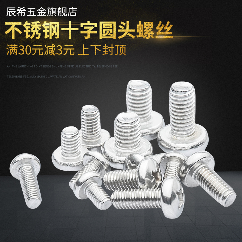 US-made 304 stainless steel pan head machine screw cross round head screw yuan machine 10#32 10#24