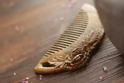 Peony green sandalwood comb (kraft paper packaging) Peony green sandalwood comb (bag packaging)