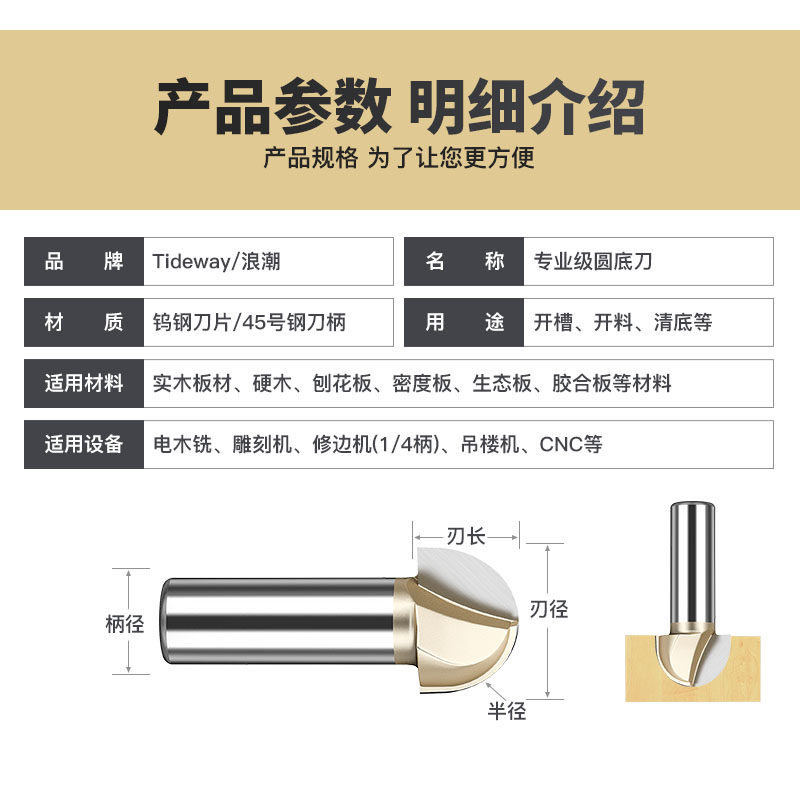 Langchao lengthened deep round bottom cutter woodworking milling cutter slotting cutter trimming machine cutter head engraving machine bakelite milling gong cutter