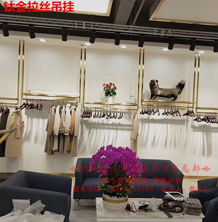 Clothing store hanger rack black titanium alloy display rack thickened rose gold wall hanging ceiling rack with plate hanger new