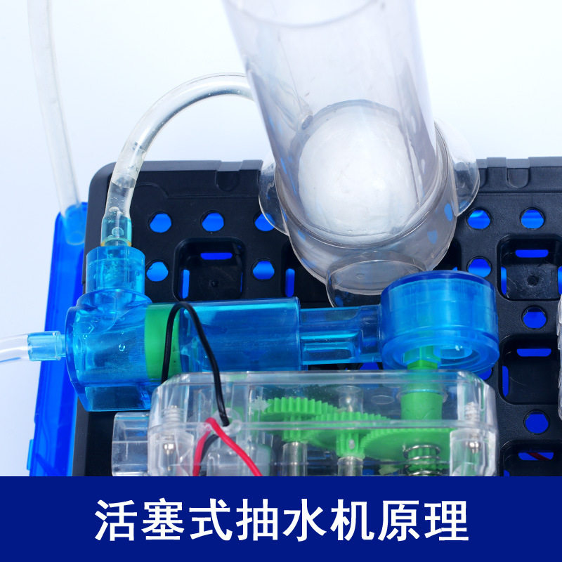 Children's science and technology teaching toy water cycle experimental piston type water pump electronic assembly building block science small making