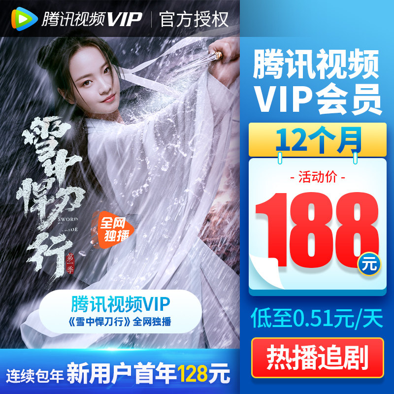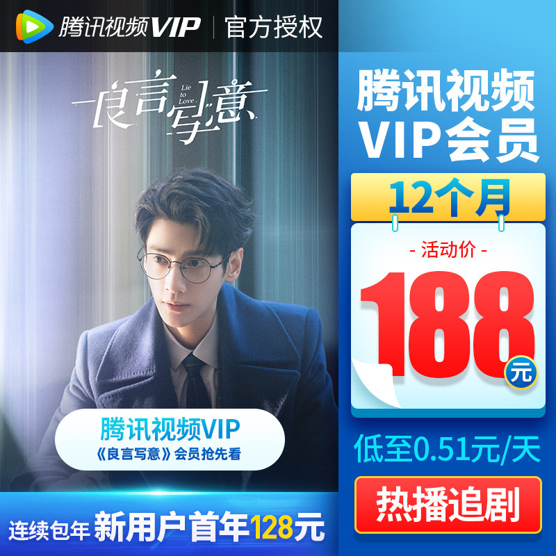 (188 yuan after coupon) Tencent Video VIP members 12 months a year card Tencent video VIP members 1 year fee