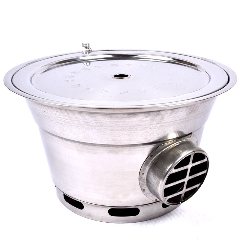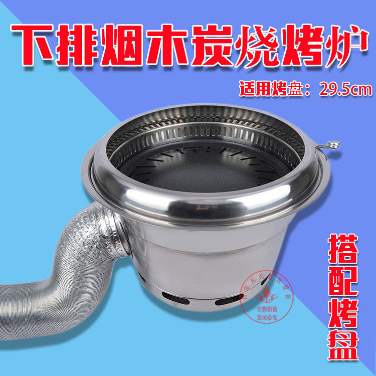 Korean-style bottom-smoke charcoal barbecue stove stainless steel floor row barbecue stove grill pot charcoal grill commercial round embedded stove