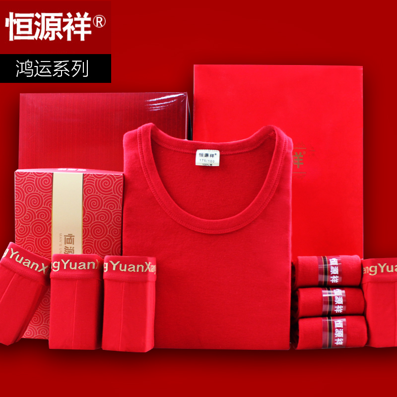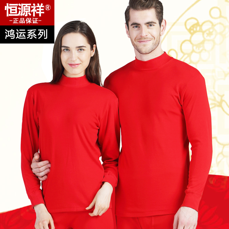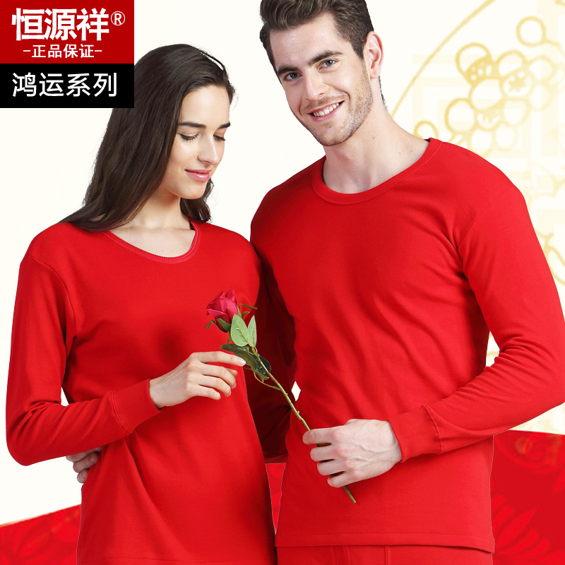Hengyuanxiang big red year of life pure cotton autumn clothes sanitary pants men's velvet thickened thermal underwear Women's suit Hongyun Year of the Ox